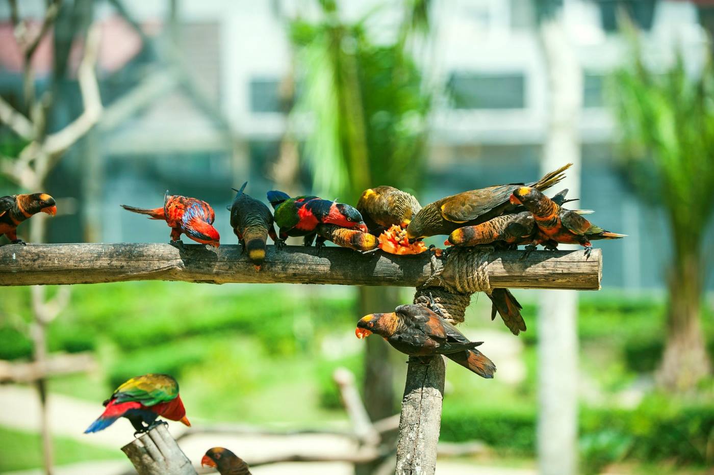 飛禽公園外觀交錯的鋼筋水泥構造,猶如巨大鳥籠,在裡面棲息著各式各樣罕見的飛禽鳥類,其中還包括受保護的“綠孔雀”相當珍貴。公園內一應俱全,包括餐廳、兒童遊樂場、紀念商品店等等,可以讓遊客待上大半天。