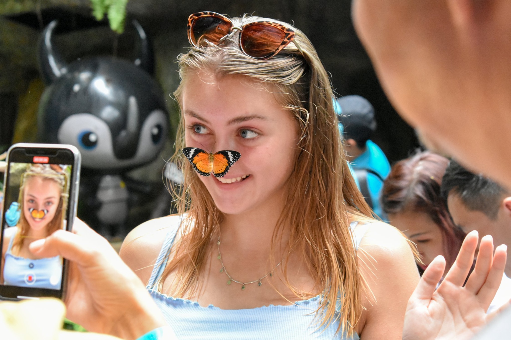 這是蝴蝶飛行區,蝴蝶將忙於收集花蜜,如果蝴蝶停在你身上,是因為它在'收集'你的汗水。成長的美麗花蝴蝶壽命只有兩個星期,在這裡任何時候都有大約15000只自由飛翔的蝴蝶 。同時還可以沿著花園夾層的陽臺漫步,看看園內的各色花草樹木有多壯觀。
