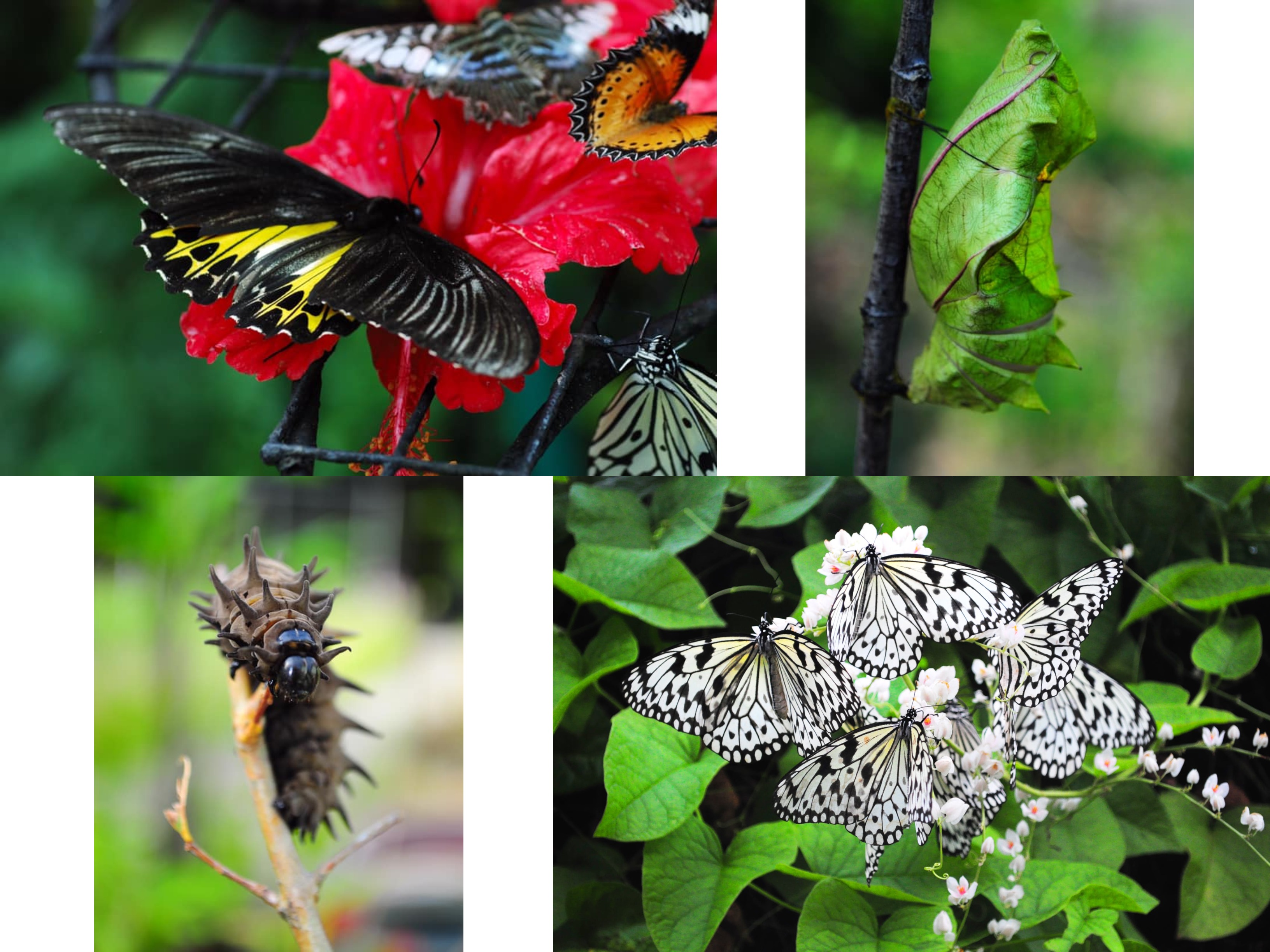 這裡是蝴蝶培育場。你可看到蝴蝶蛻變成長的過程。幸運的話,你可看到蝴蝶從金色蛹破蛹而出。