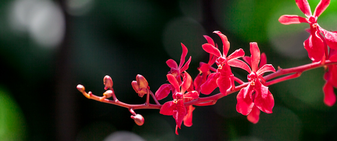 蘭花,別名胡姬花,是馬來西亞的鄰國——新加坡的國花,主要分為附生蘭花(Epiphytic Orchids)和陸生蘭花(Terrestrial Orchids)。附生蘭花生長在木炭、磚塊、樹幹或樹枝上,而陸生蘭花則從地面生長。蘭花是開花植物中最大、最具多樣性的科,現有870個屬和28,000個種。除了南北二極外,這種蘭科植物廣泛分佈於全世界,尤以亞洲和南美洲的熱帶地區的物種多樣性最為豐富,常見的品種有春蘭、寒蘭、墨蘭、石斛蘭、蝴蝶蘭、萬代蘭、文心蘭等。