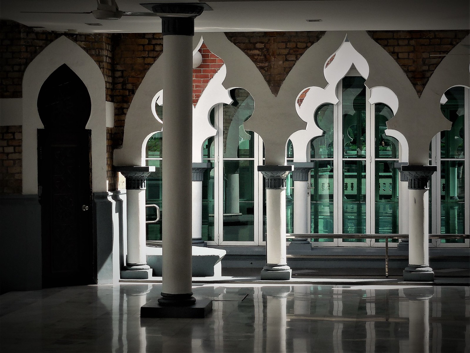 占美清真寺由著名的英國建築師Arthur Benison Hubback所設計,其建築風格結合了印度撒拉遜式(Indo-Saracenic Architecture)、摩爾式(Moorish Architecture)和莫臥兒式(Mughal Architecture)三種英殖民時期常見的建築特色。三座洋蔥圓頂搭配兩座高塔,紅磚白牆砌成的清真寺,在一片棕櫚叢林間更顯其莊嚴幽靜;明亮簡潔的禮拜空間,搭配大理石地板,沁人心脾的舒適感覺撲面而來。儘管歷經百年風霜,白色外牆已現斑駁的痕跡,四周也被現代化的高樓大廈包圍,而占美清真寺仍駐守在河邊,時光彷彿靜止流動般。